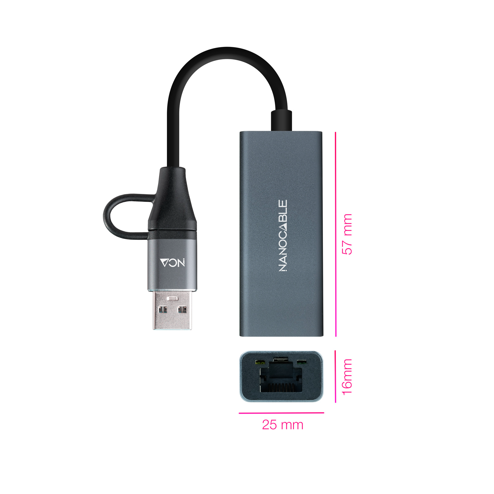 CONVERSOR USB-C+USB-A/M 3.0 A ETHERNET 15 CM GRIS NANOCABLE